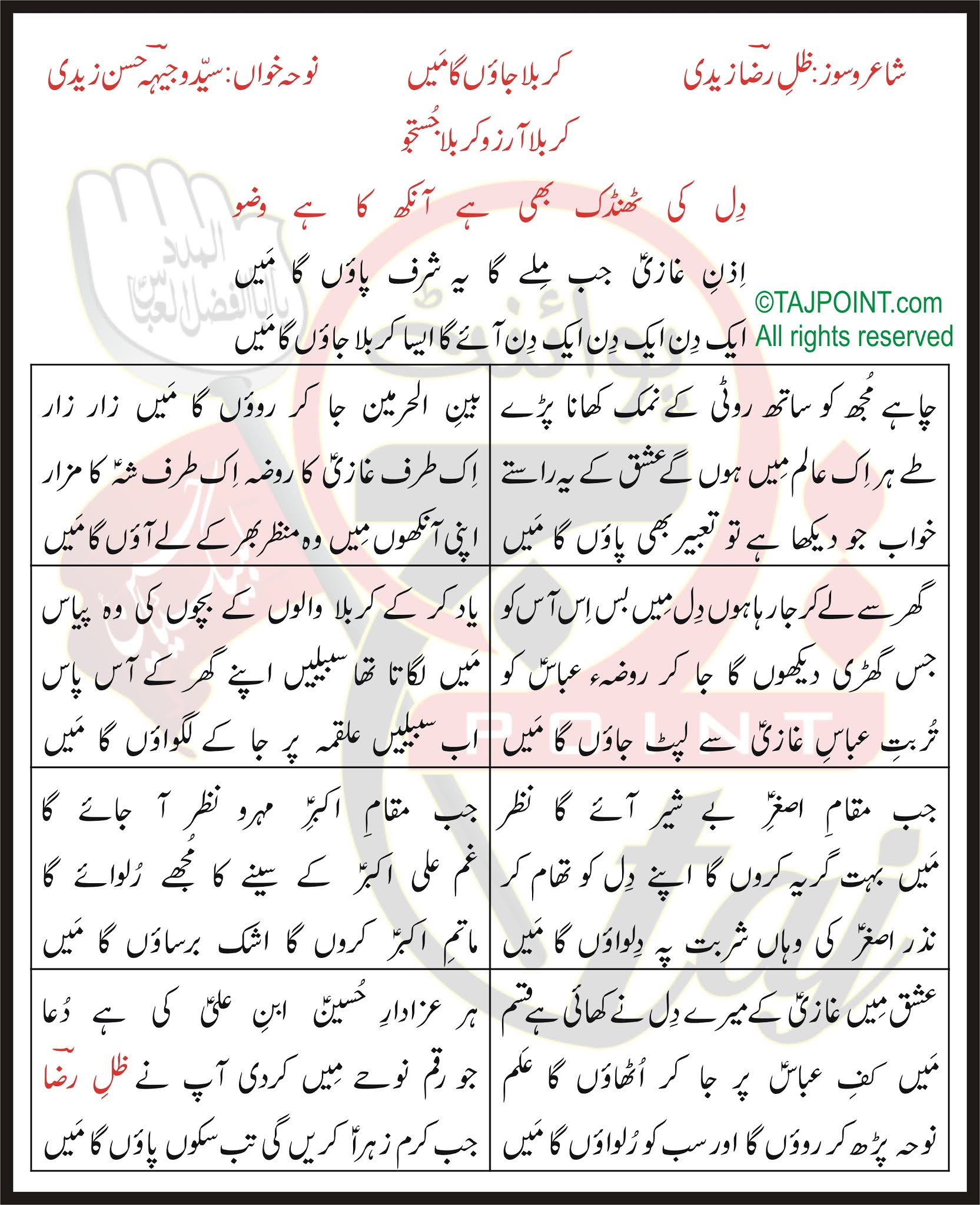 Karbala Jaonga Main Syed Wajhi Hasan Zaidi Lyrics In Urdu and Roman Urdu