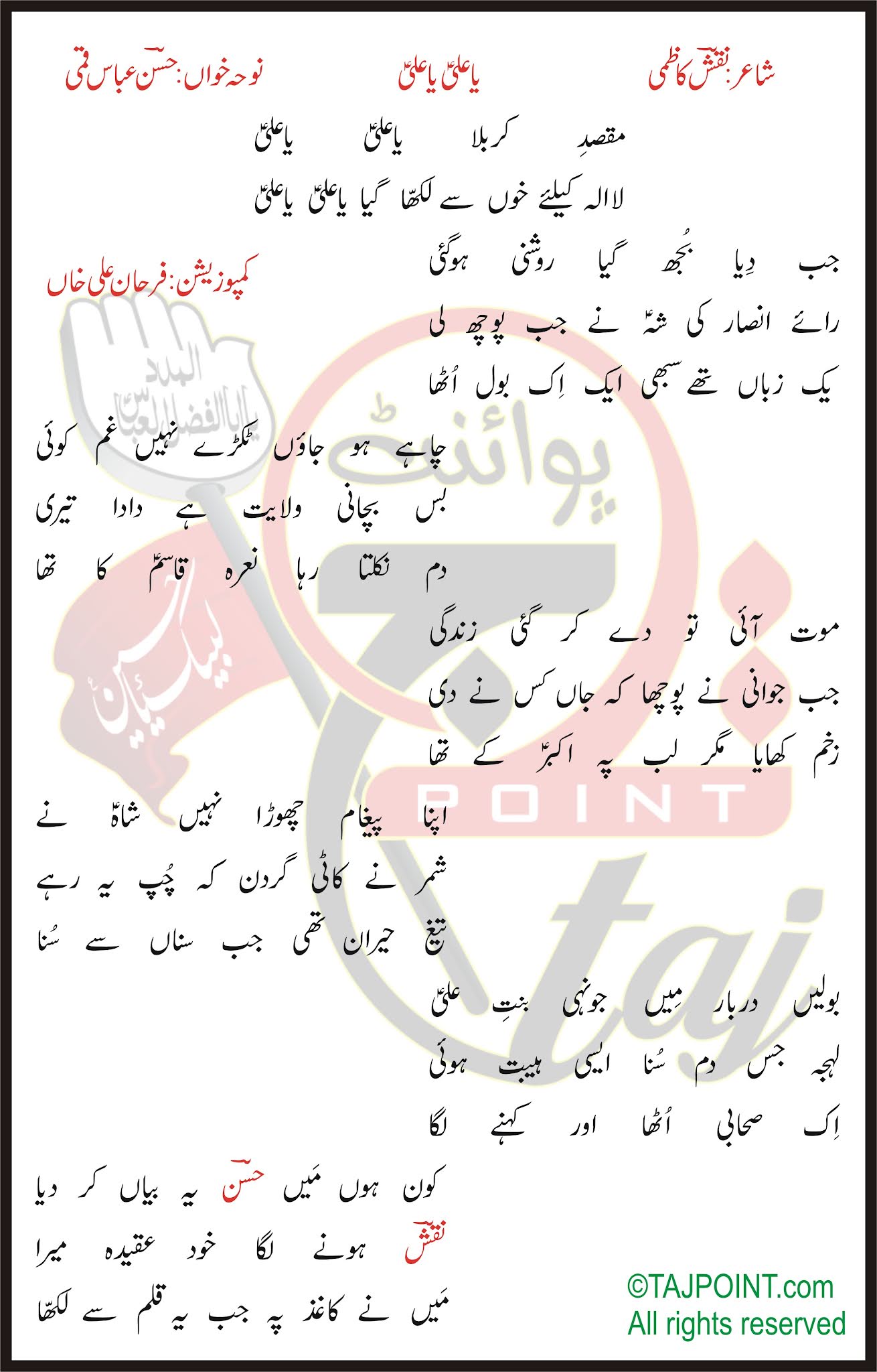 Maqsad-e-Karbala Ya Ali Ya Ali Hassan Abbas Qummi Lyrics In Urdu and Roman Urdu