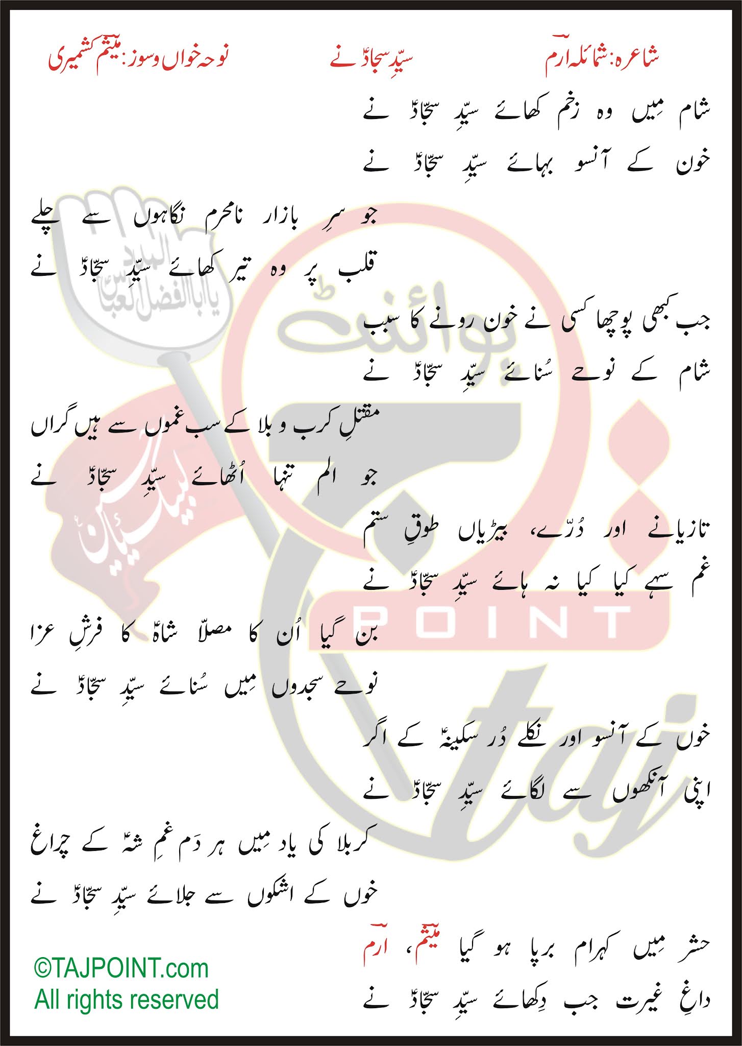 Sham Mein Woh Zakhm Khaye Syed-e-Sajjad Ne.