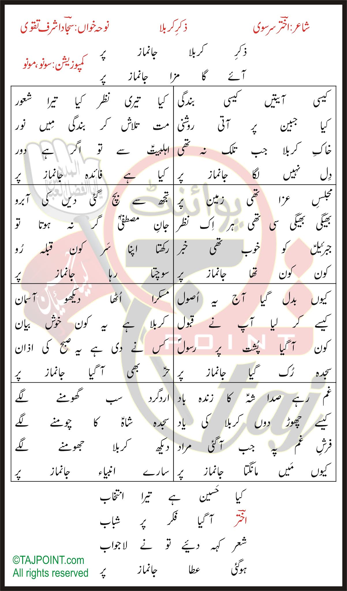 Zikr-E-Karbala Sajjad Ashraf Taqvi Lyrics In Urdu and Roman Urdu