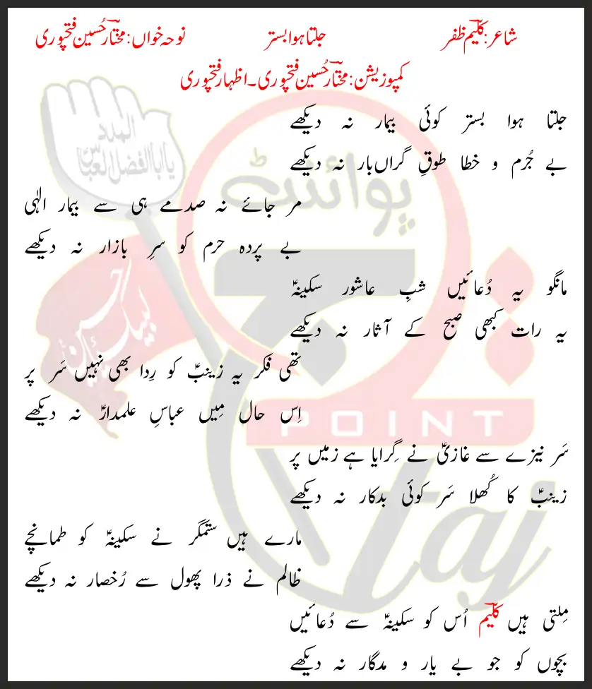 Jalta Hua Bistar Mukhtar Hussain Fatehpuri Lyrics In Urdu 2021
