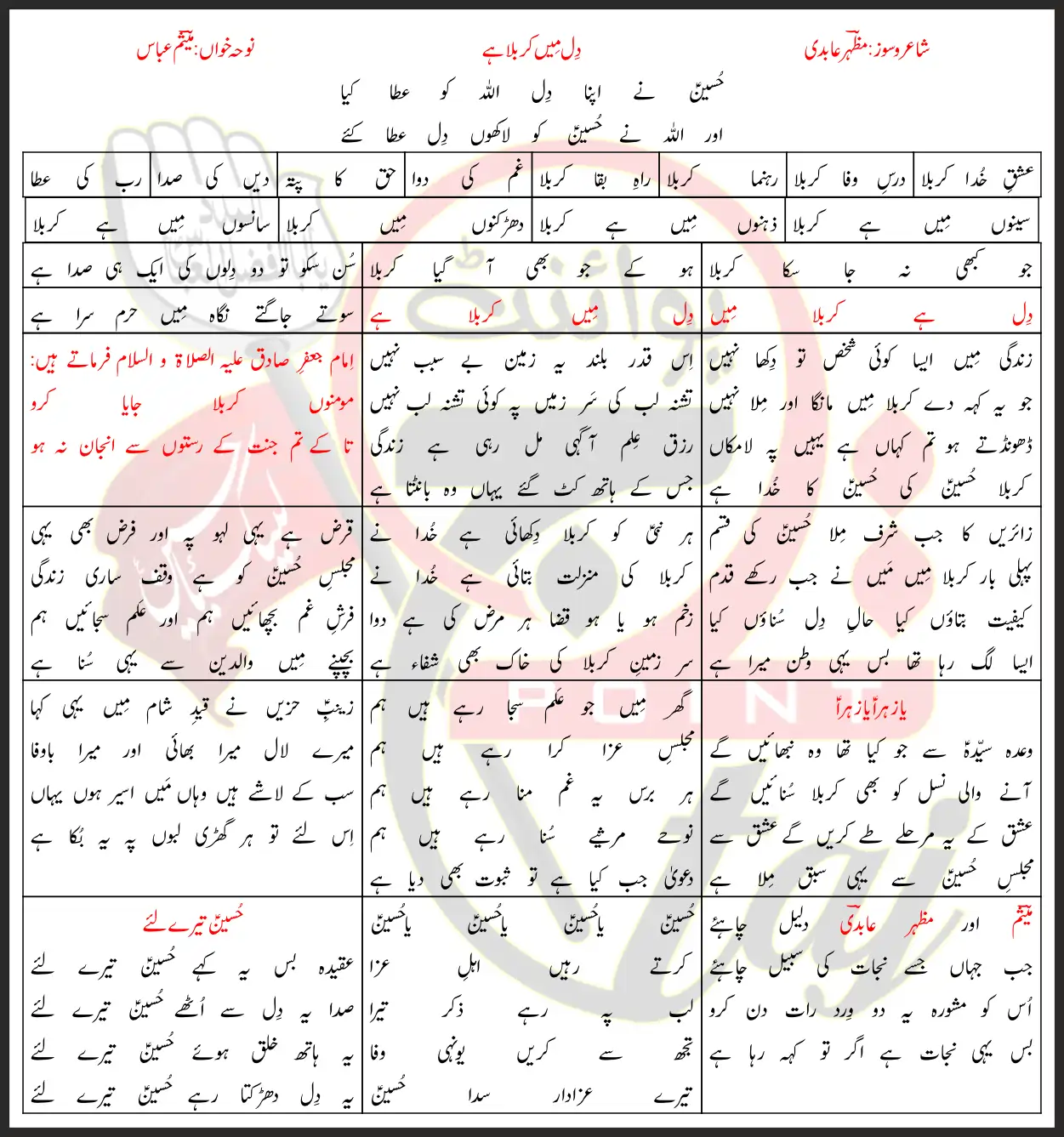 Dil Mai Karbala Hai Mesum Abbas Lyrics In Urdu