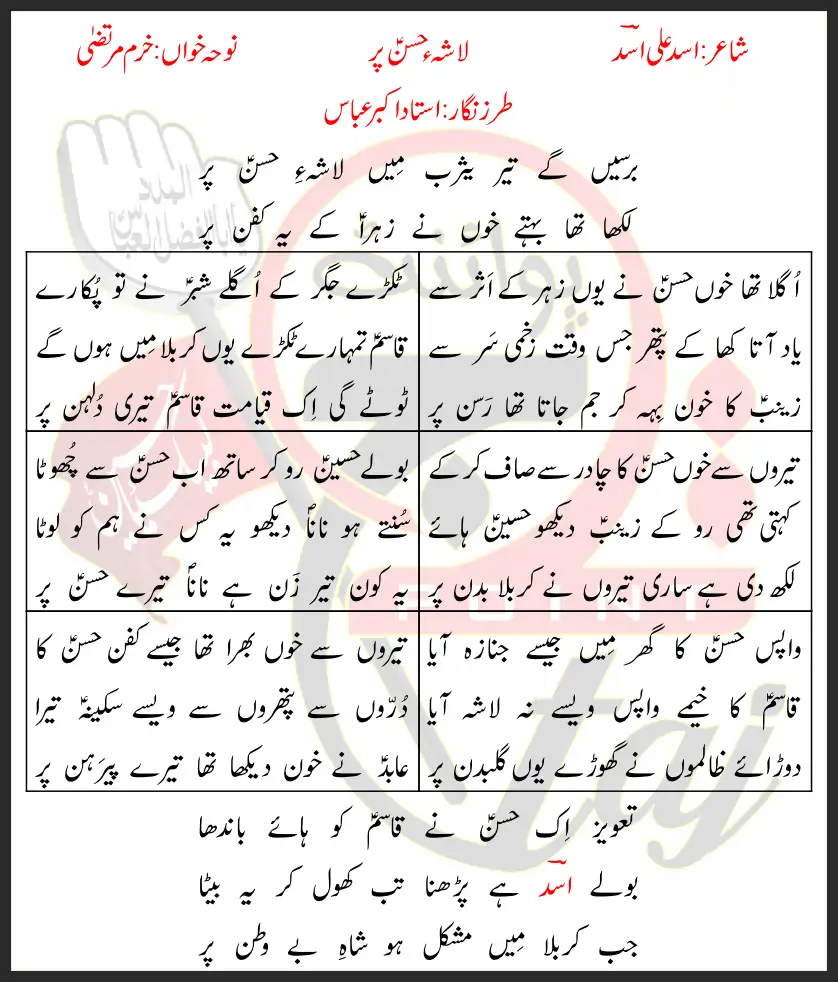 Lasha e Hassan Par Khuram Murtaza Lyrics In Urdu