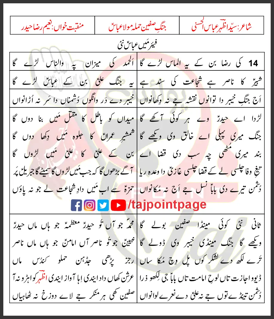 Jang e Sifeen Moula Abbas Ka Hamla Naeem Raza Haider Lyrics Urdu 2022