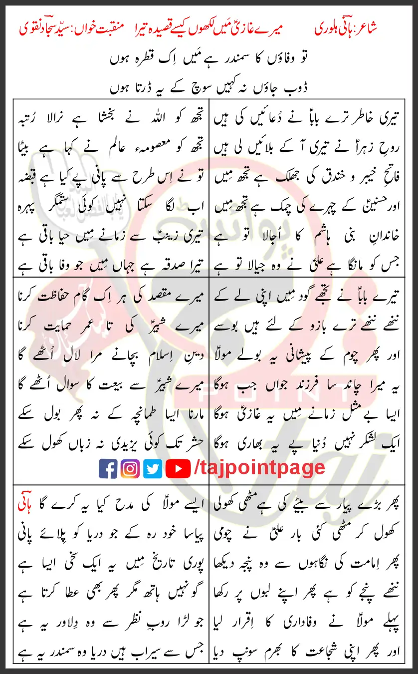 Meray Ghazi Mein Likhon Keisay Qasida Tera Syed Sajjad Naqvi Lyrics Urdu 2022