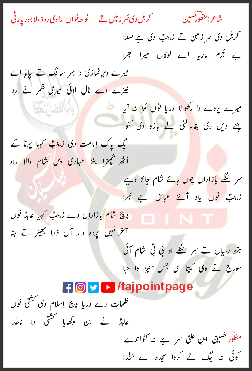 Karbal Di Sar Zameen Te Zainab Di Hai Sada Ravi Road Lahore Party Lyrics Punjabi 2002
