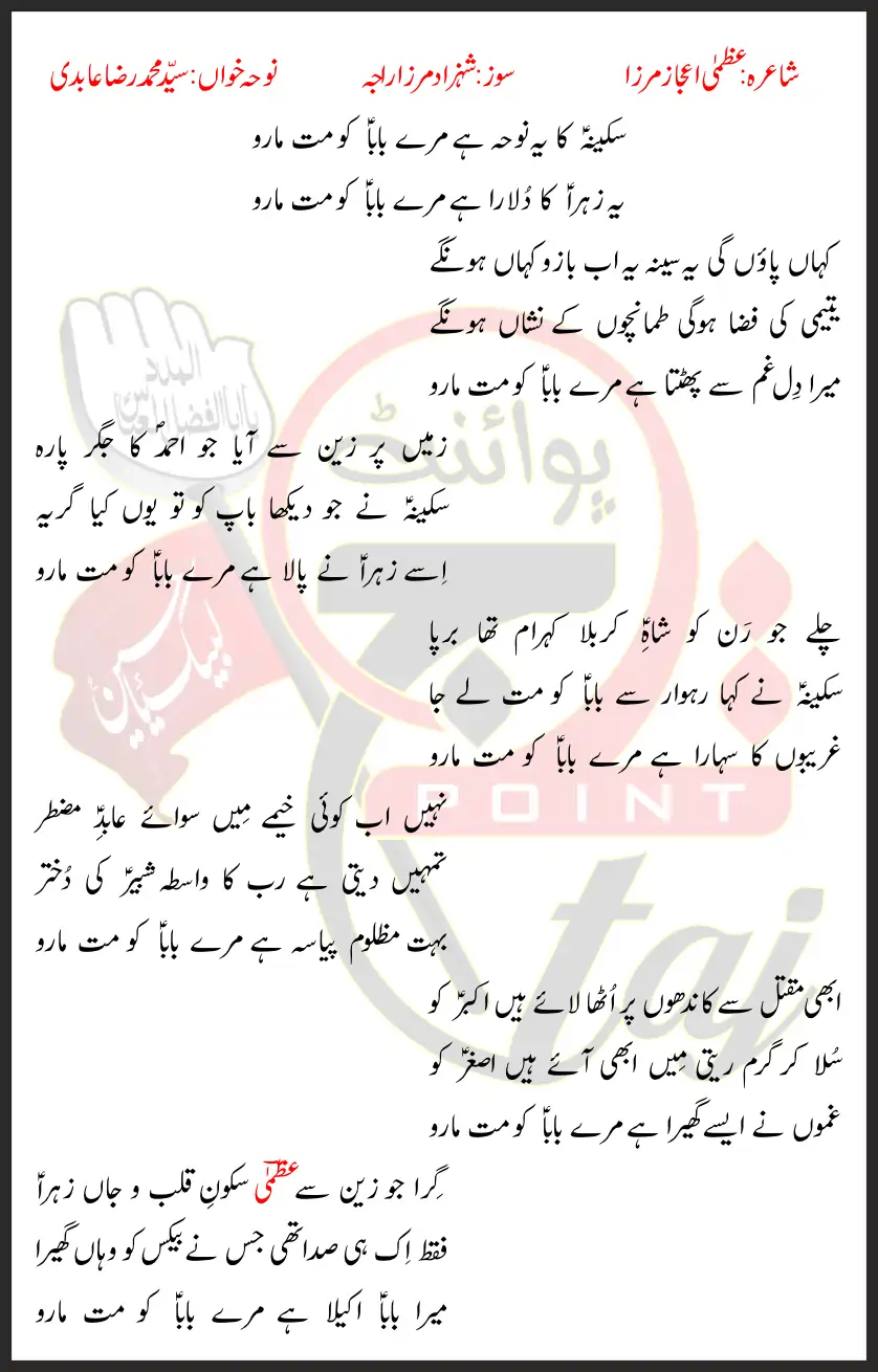Sakina Ka Yeh Noha Syed Muhammad Raza Abidi Lyrics In Urdu 2023