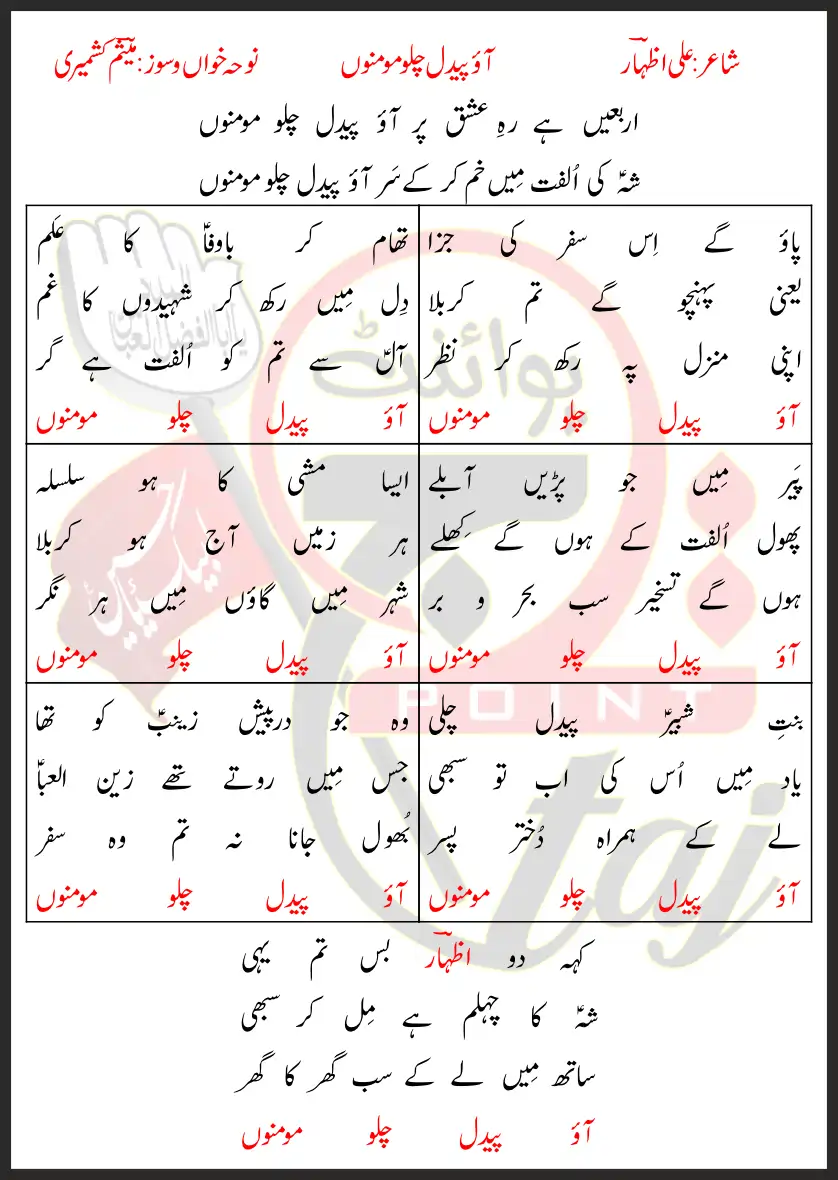 Arbaeen Hai Rah-e-Ishq Par Aao Paidal Chalo Momino.