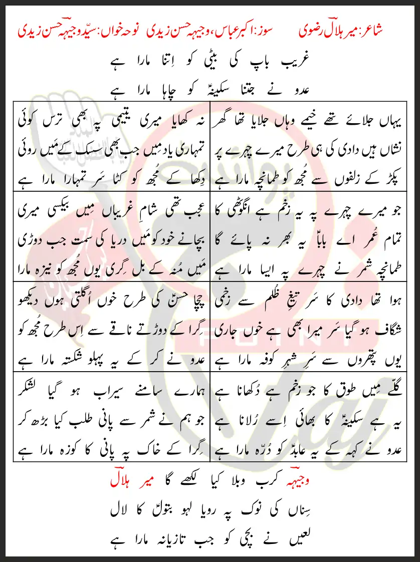 Noha Khuwan: :Syed Wajhi Hasan Zaidi: