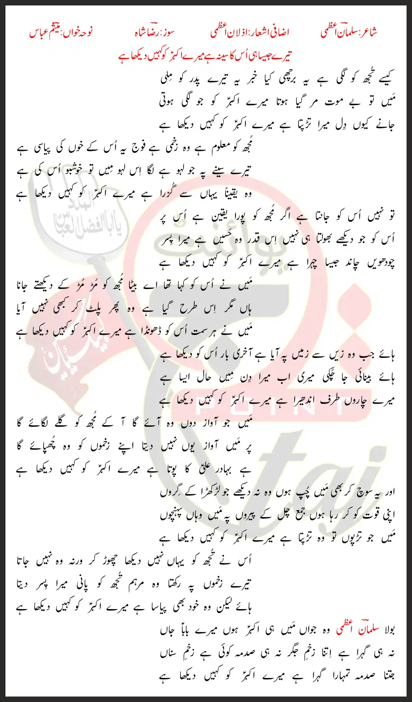 Mere Akbar Ko Kahin Dekha Hai Mesum Abbas Lyrics In Urdu