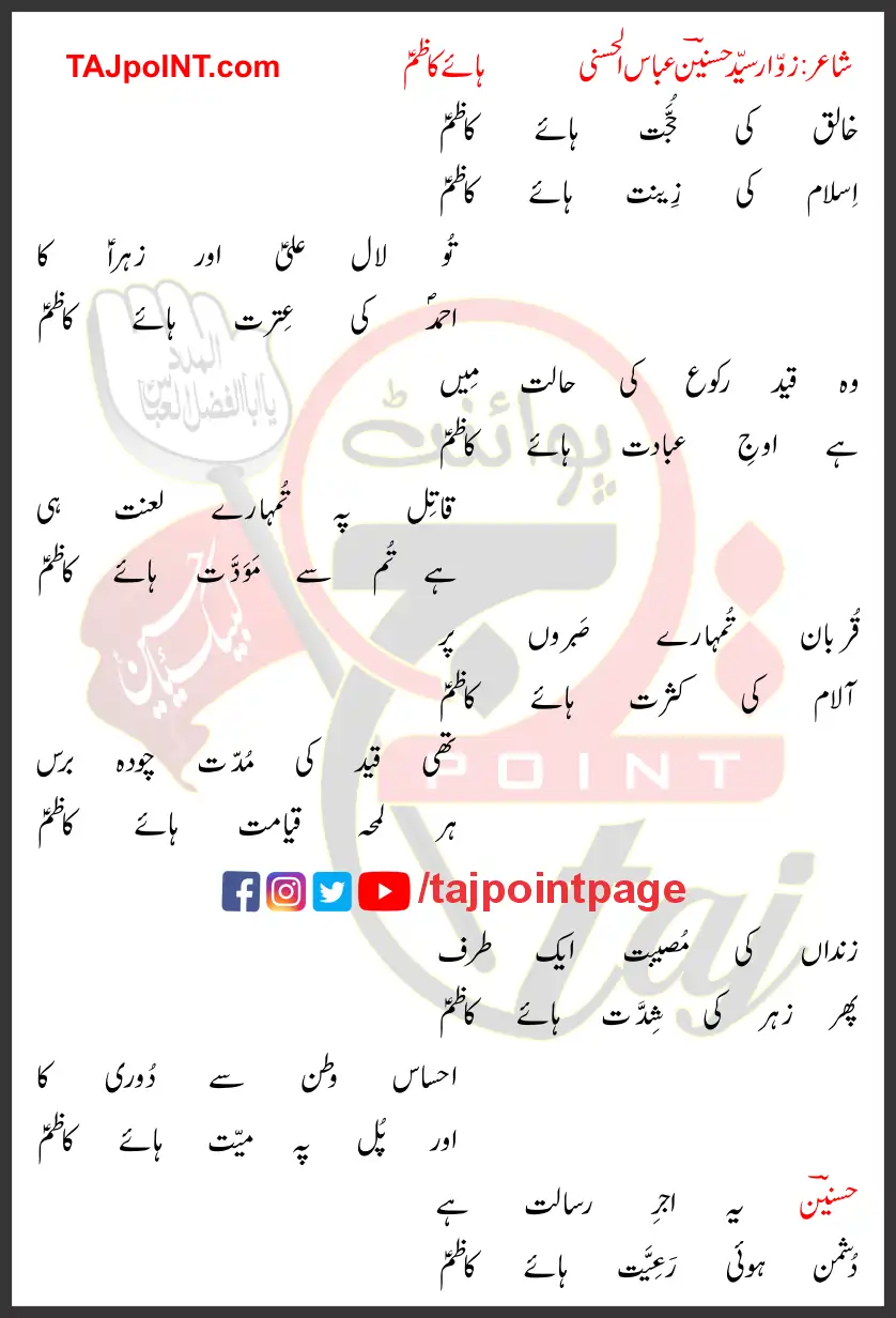Phir Zehar Ki Shiddat Haye Kazim.