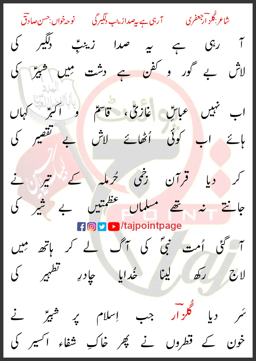 Aa Rahi Hai Ye Sada Zainab e Dilgeer Ki Hasan Sadiq Lyrics Urdu 1998
