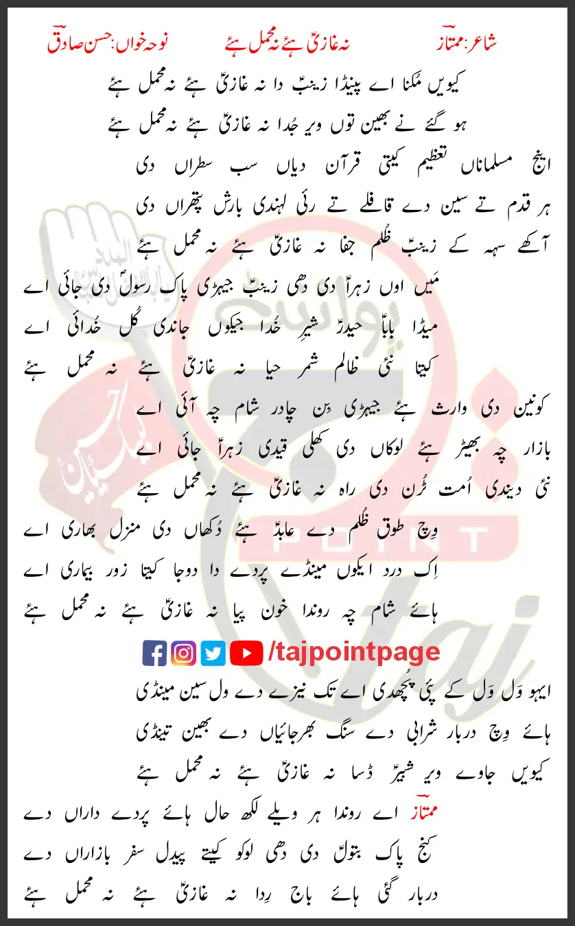 Kiwein Mukna Aye Painda Zainab Da Na Ghazi Hay Na Mehmal Hay.