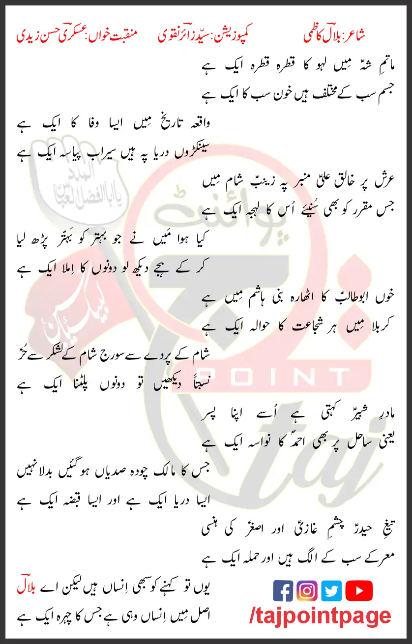 Matam-e-Sheh Mein Lahu Ka Qatra Qatra Aik Hai.