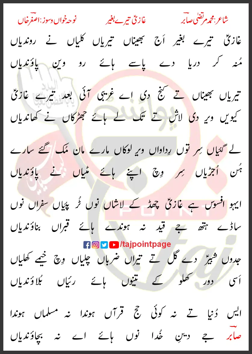 Ghazi Tere Beghair Asghar Khan Lyrics Punjabi