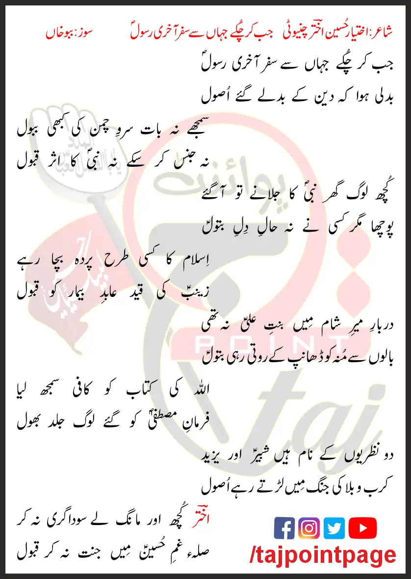 Jab Kar Chukey Jahan Se Safar Aakhri Rasool Lyrics In Urdu 2023