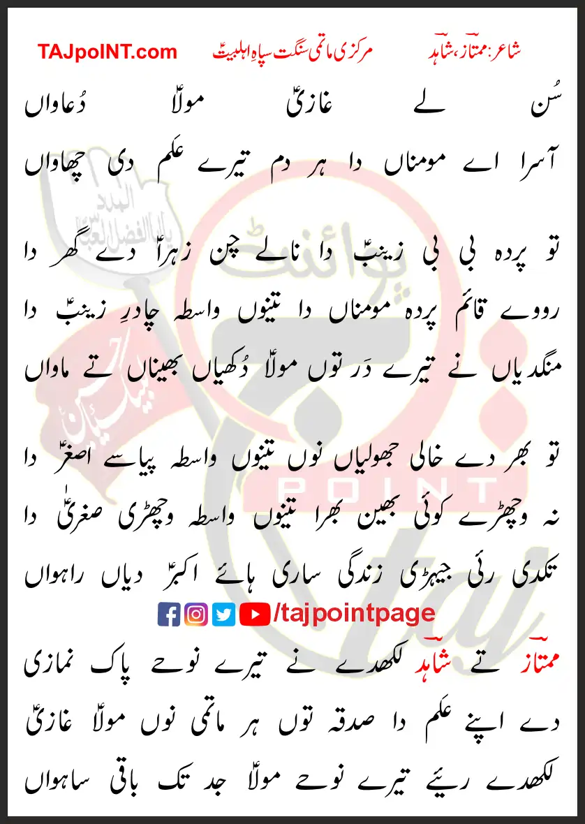 De Apne Alam Da Sadqa Taun Har Matami Nu Maula Ghazi.