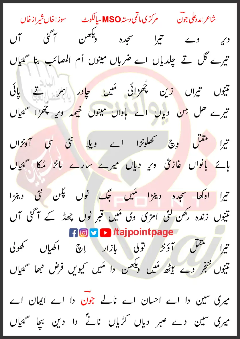 Tera Okha Sajdah Denra Main Jag Nu Polan Nayi Denra.