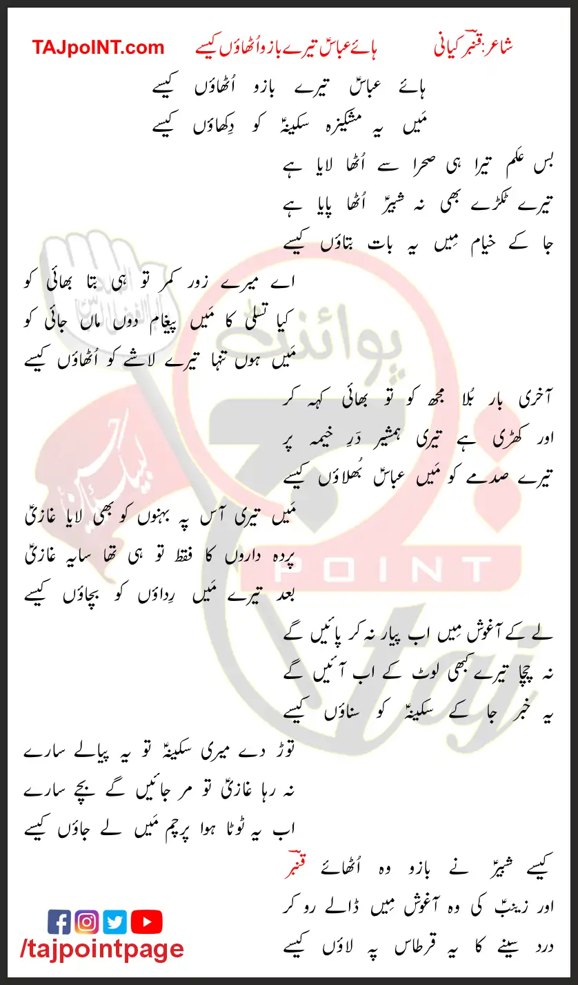 Haye Abbas Tere Bazo Uthaon Kaisay Lyrics In Urdu 2023