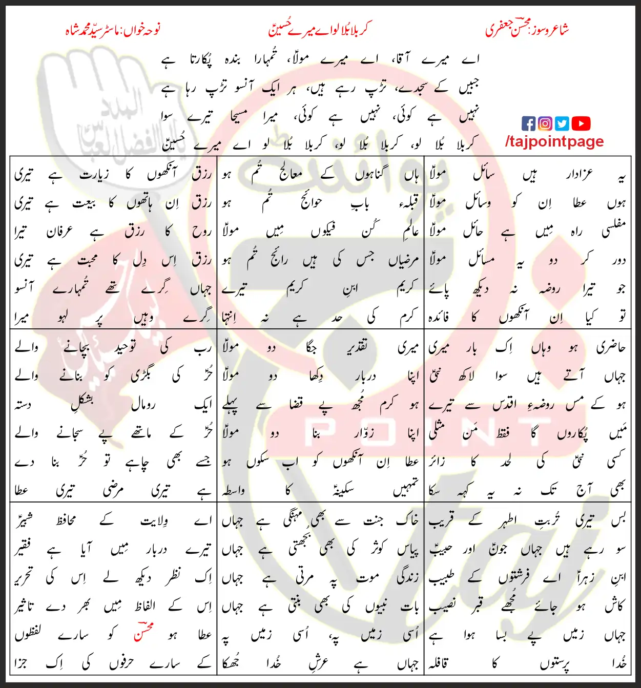 Karbala Bula Lo Ay Mere Hussain Syed Mohammad Shah Lyrics In Urdu 2023 Write Up Poster Image