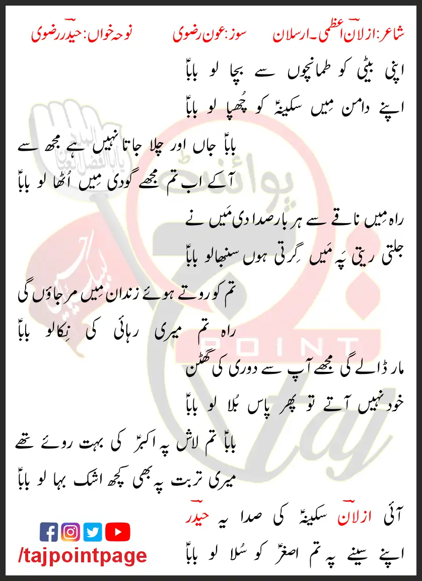 Apne Daman Mein Sakina Ko Chupa Lo Baba.