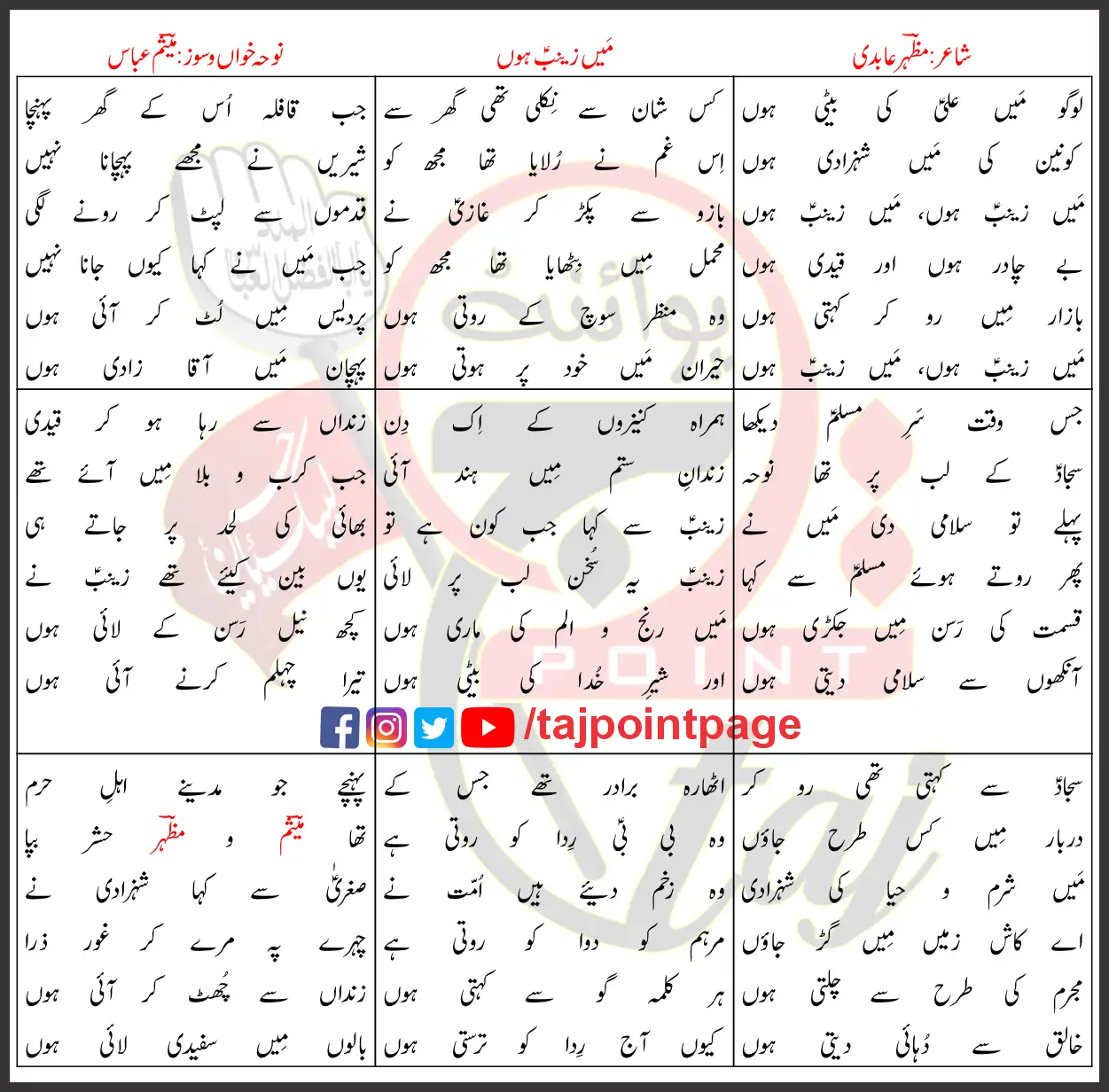 Main Zainab Hoon Mesum Abbas Lyrics Urdu 2023