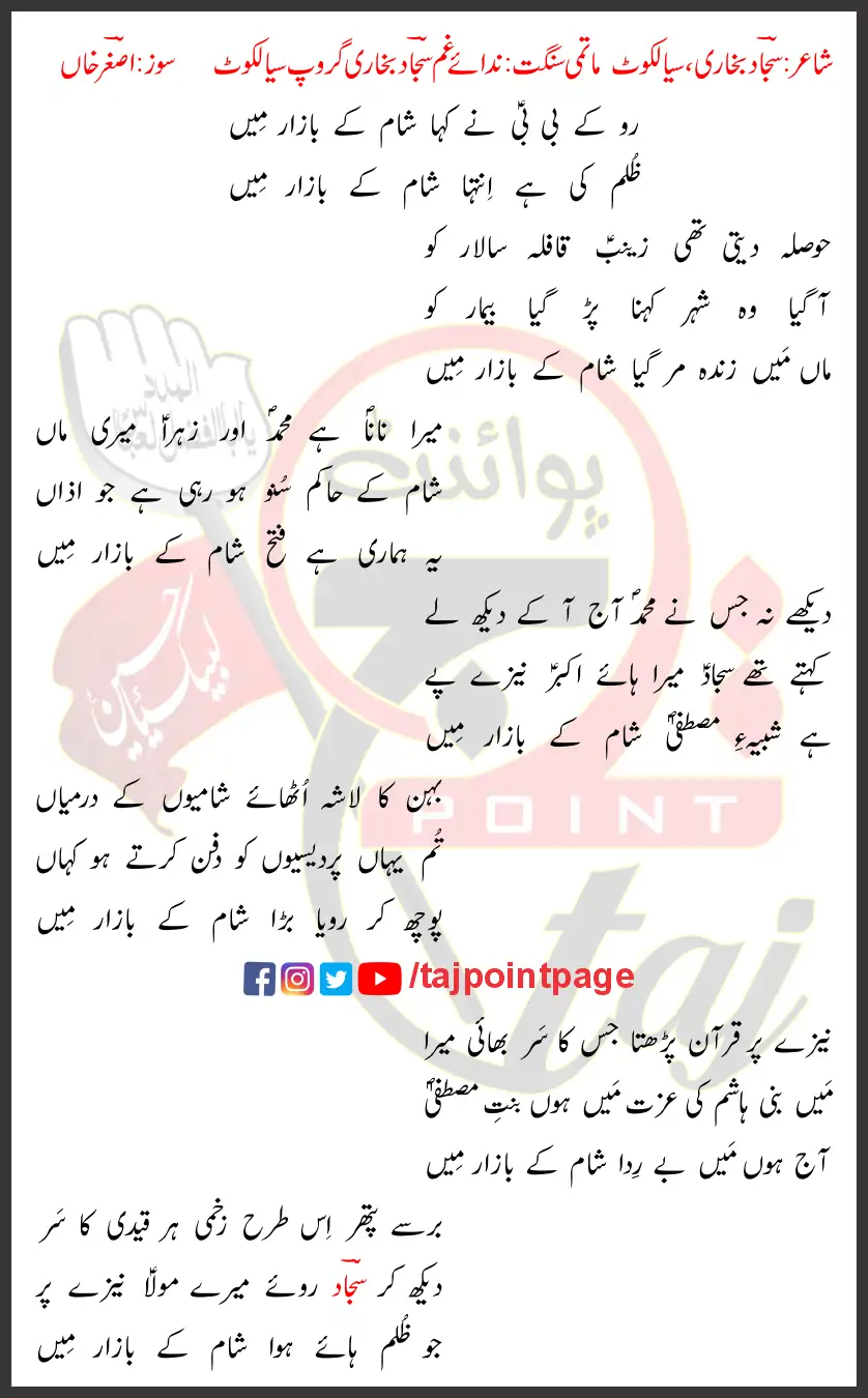 Ro Ke Bibi Ne Kaha Sham Ke Bazar Mein Asghar Khan Lyrics Urdu 2023