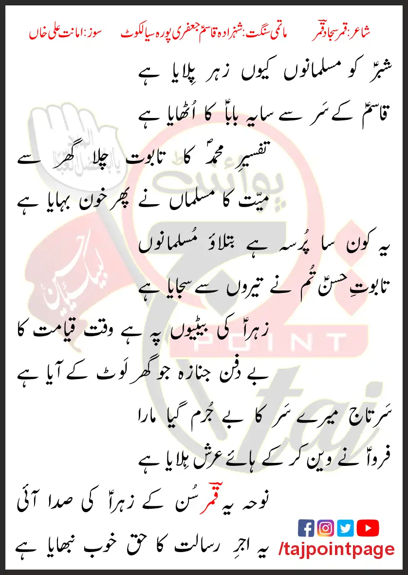 Shabbar Ko Musalmano Kyun Zehar Pilaya Hai Lyrics In Urdu 2023
