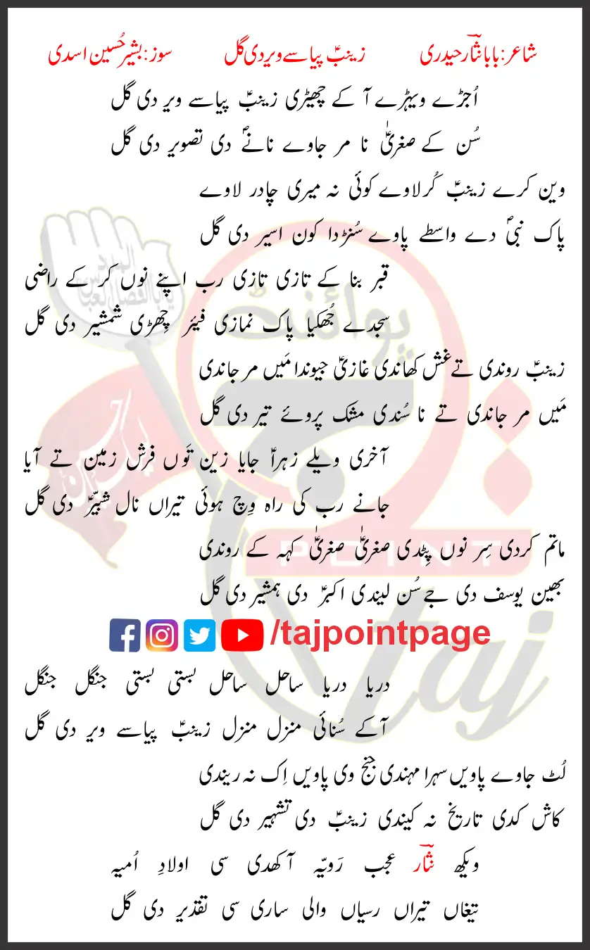 Ujray Veray Aa Ke Cheri Zainab Pyasay Veer Di Gal.