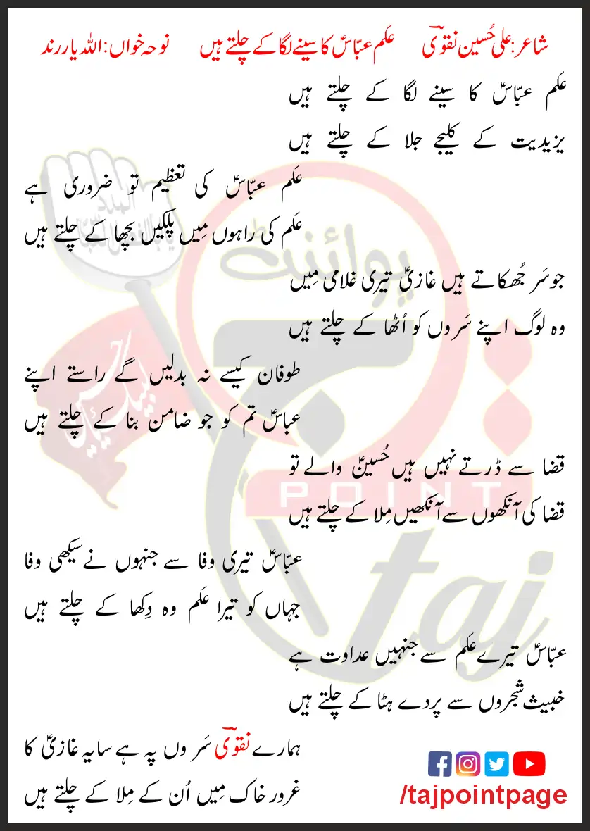 Alam Abbas Ka Seene Laga Ke Chalte Hain Lyrics In Urdu 2023