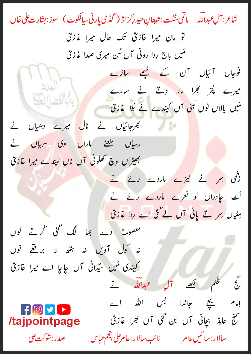 Main Baaj Rida Roni Aan Sun Meri Sada Ghazi.