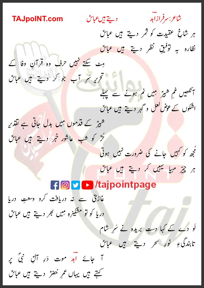 Har Shakh e Aqedat Ko Samar Dete Hain Abbas Lyrics Urdu 2024 Write Up Poster Image