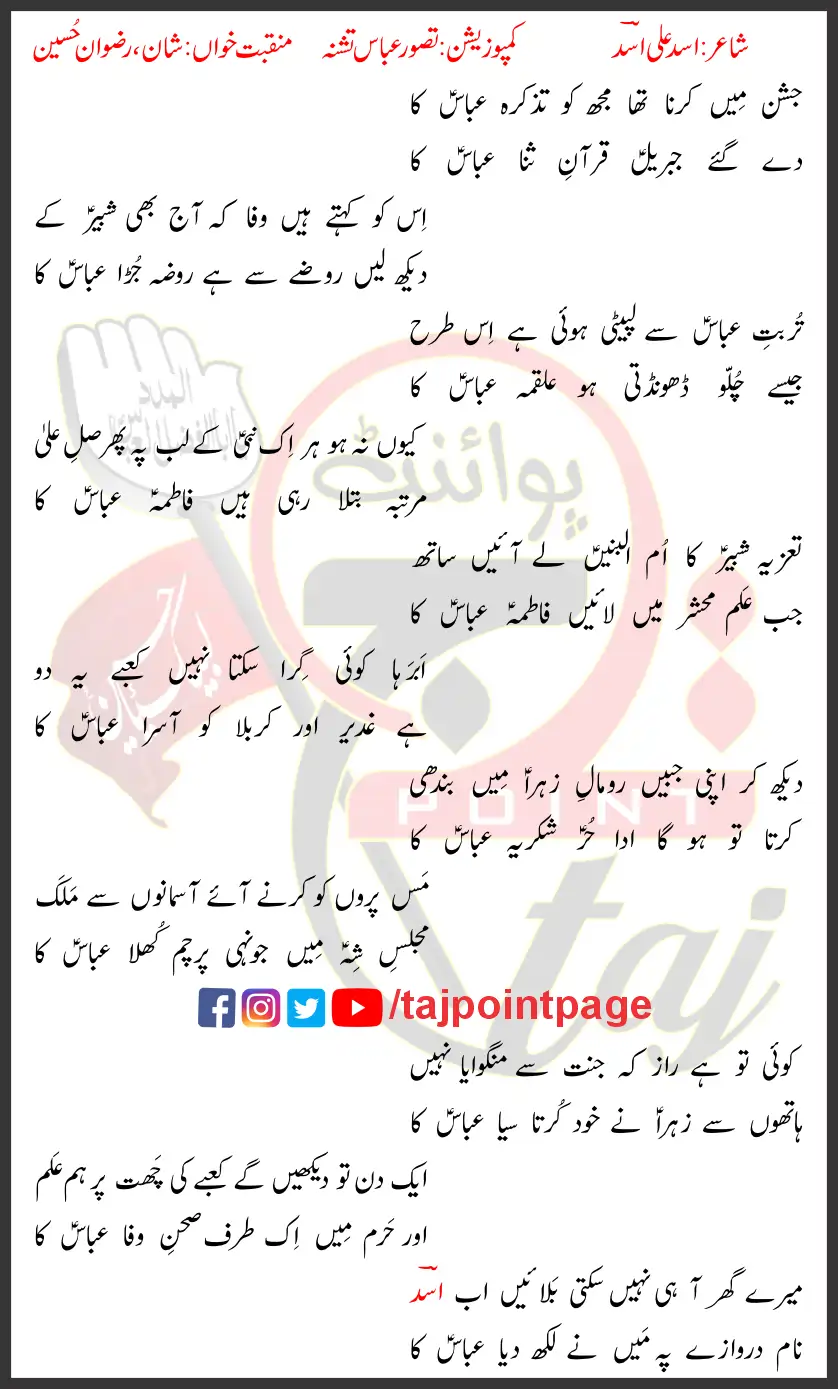 Tazkira Abbas Ka Shaan Rizwan Hussain Lyrics Urdu 2024