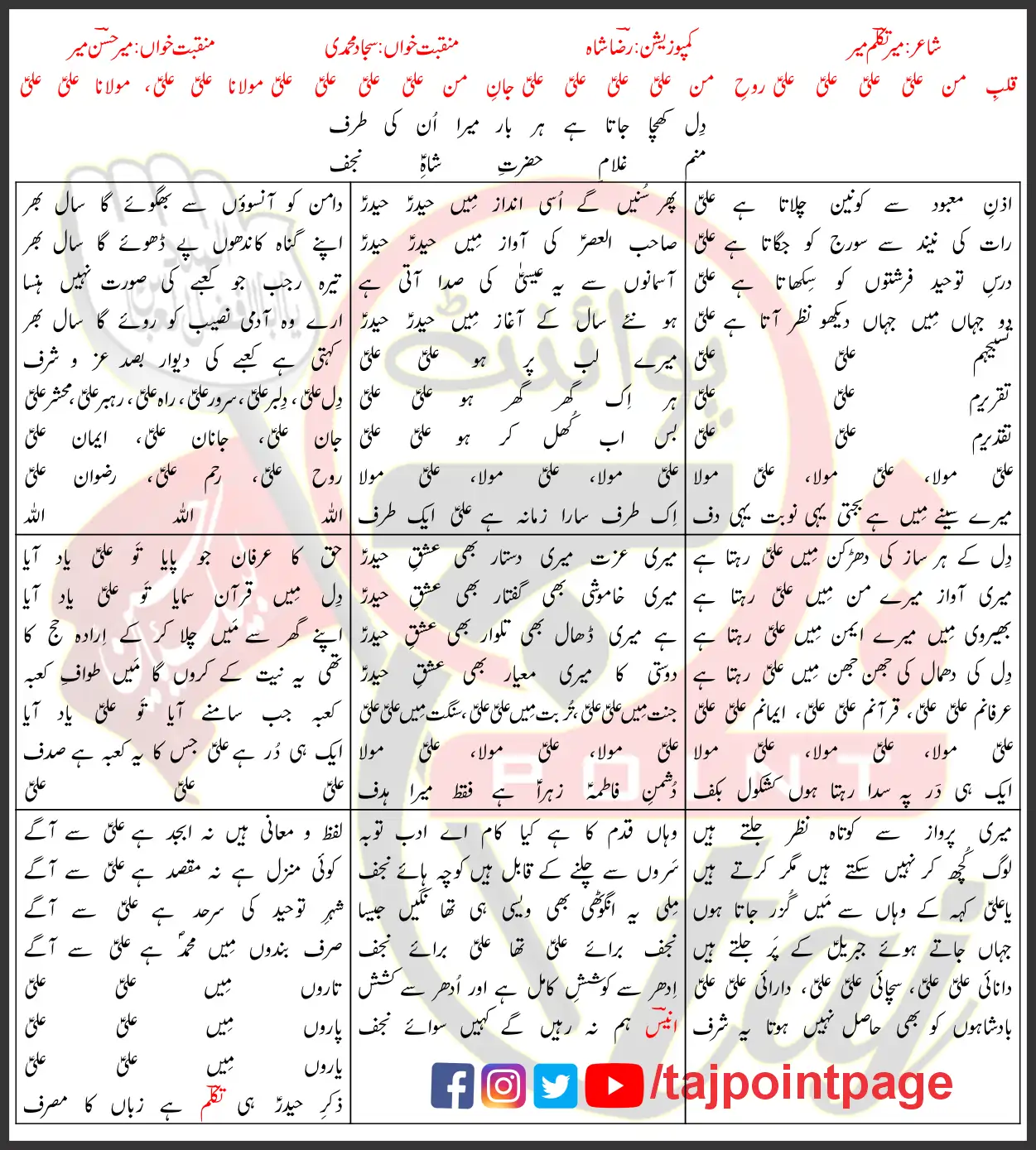 Manam Ghulam e Hazrat e Shah e Najaf Mir Hasan Mir Lyrics Urdu 2026