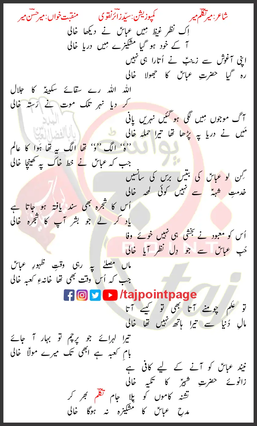 Abbas Ne Dekha Khali Mir Hasan Mir Lyrics Urdu 2026 Write Up Poster Image