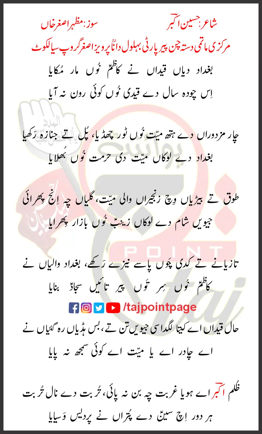 Baghdad Diyan Qaidan Ne Kazim Nu Mar Mukaya Lyrics Punjabi 2026