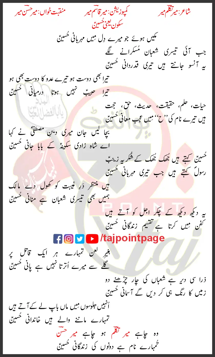 Sukoon Yani Hussain Mir Hasan Mir Lyrics Urdu 2026 Write Up Poster Image