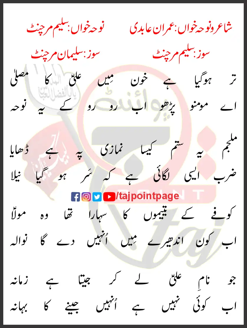 Ali Ka Musalla Salim Merchant Imran Abidi Lyrics Urdu 2026