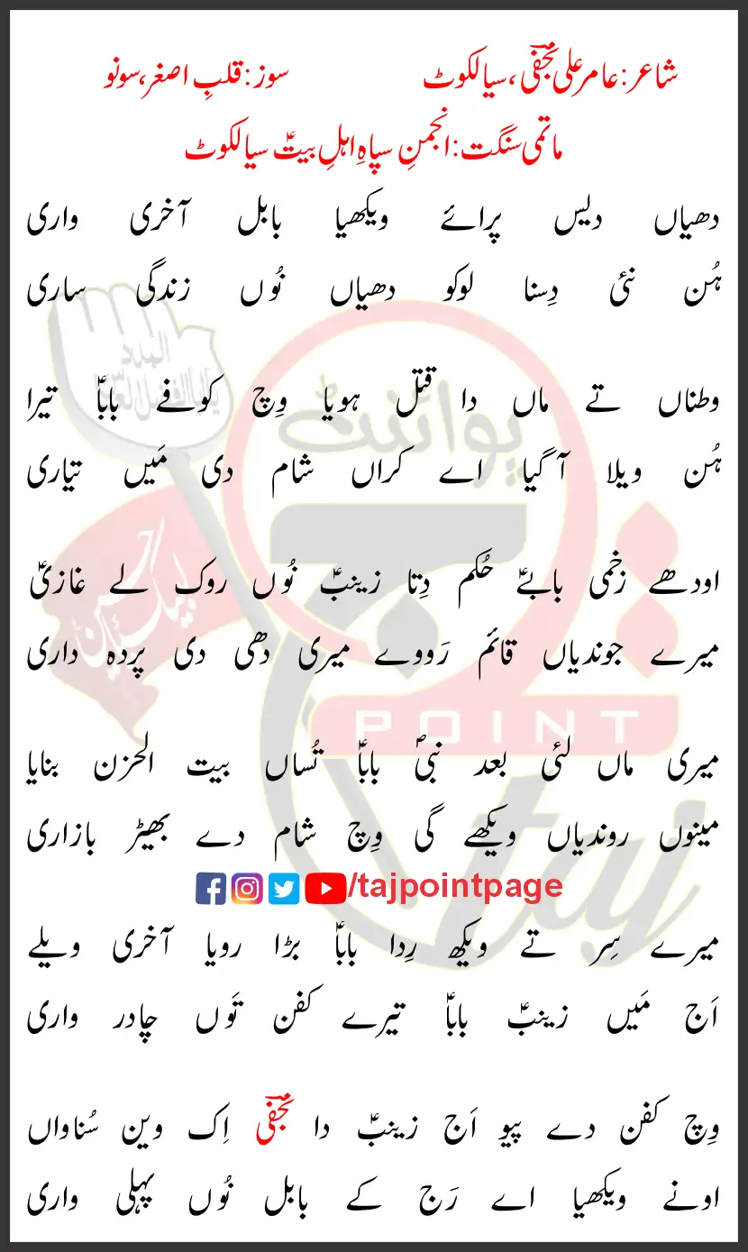 Wich Kafan De Piyo Aj Zainab Da :NAJFI: Ik Wain Sunawaan.