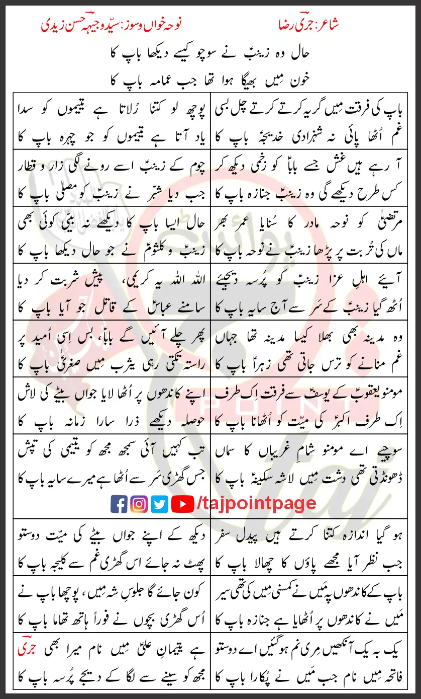 Haal Wo Zainab Ne Socho Kasy Dekha Baap Ka Wajhi Hasan Zaidi Lyrics Urdu 2026