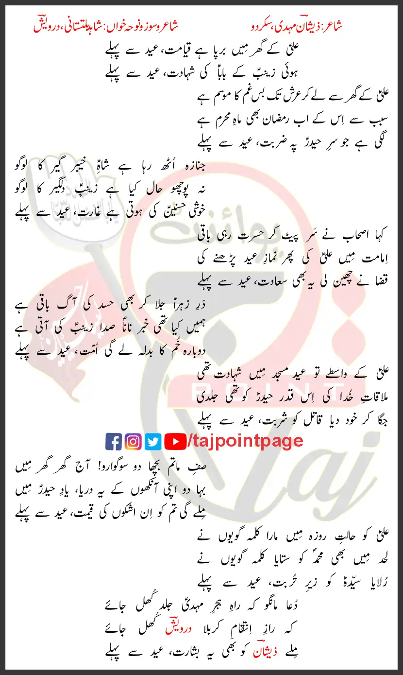 Qayamat Eid Say Pehlay Shahid Baltistani Lyrics Urdu 2026