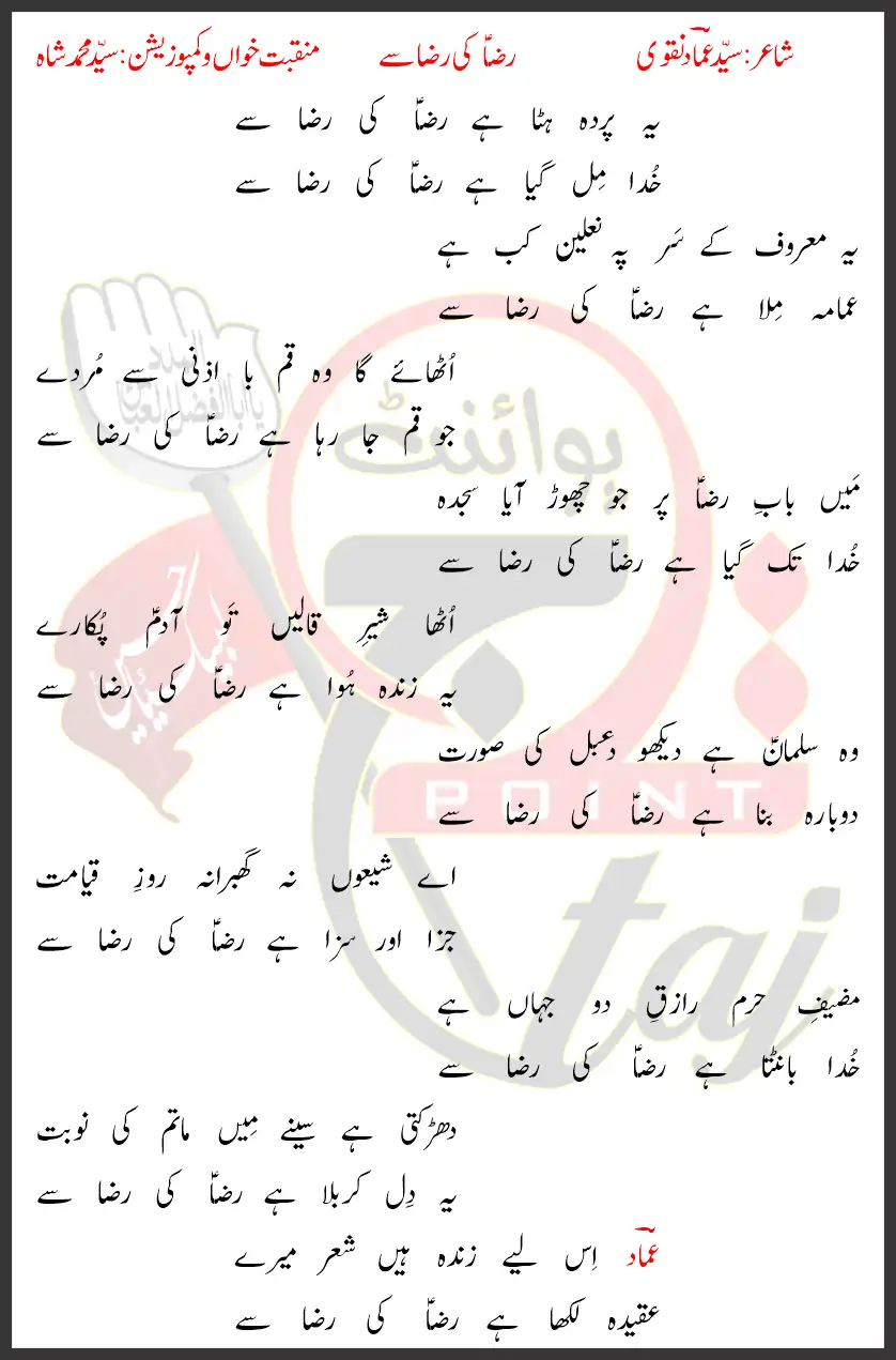 Raza Ki Raza Se Syed Mohammad Shah Lyrics Urdu 2026